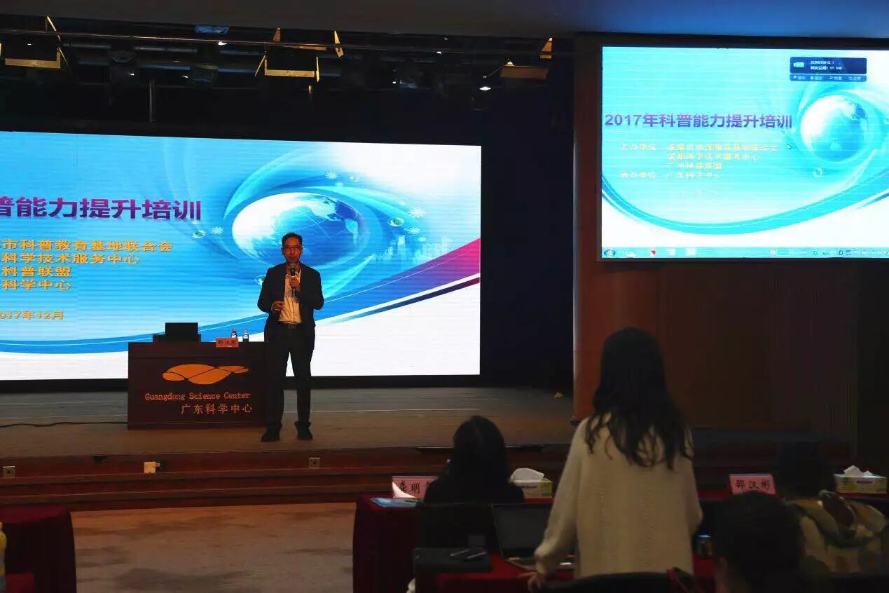 为推进实施科普人才建设工程,促进广州与兄弟省市间的科普交流与合作,加强科普队伍建设,进一步提升科普基地的管理水平和共享能力,近日,广州科普联盟、广东科学中心联合成都科学技术服务中心、成都市科普教育基地联合会在广州成功举办了“2017年科普能力提升培训班”,来自成都市各科普基地和广州科普联盟成员单位的100余名代表参加了培训。这是广州科普联盟继承办2014年重庆科普能力建设培训班和2015、2016年连续两届全国科普人才交流培训会后第四次承办科普培训活动。