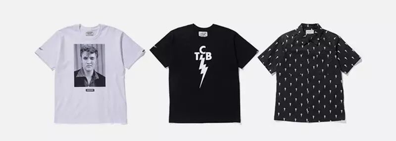 3.NEIGHBORHOOD推出“猫王”限定T恤。该系列包括猫王头像T恤、TCB logo Tee及闪电图案T恤,今日起在品牌门店与官网上架。