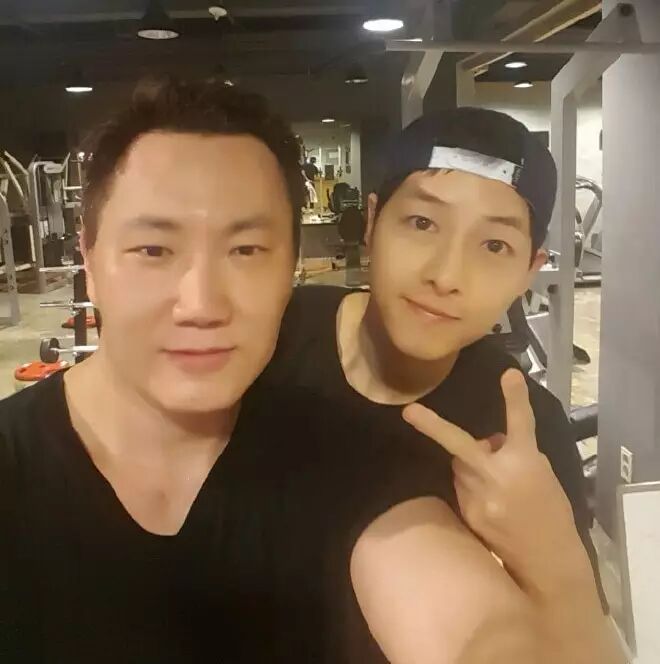 8.郑淳元po出与宋仲基的合影,照片中宋仲基躲在郑淳元身后摆剪刀手卖萌,精致五官配小V脸十分抢镜,而靠近镜头的郑淳元与宋仲基同框则显得有些脸大。(再来几张呗,比如说正在健身的画面...)