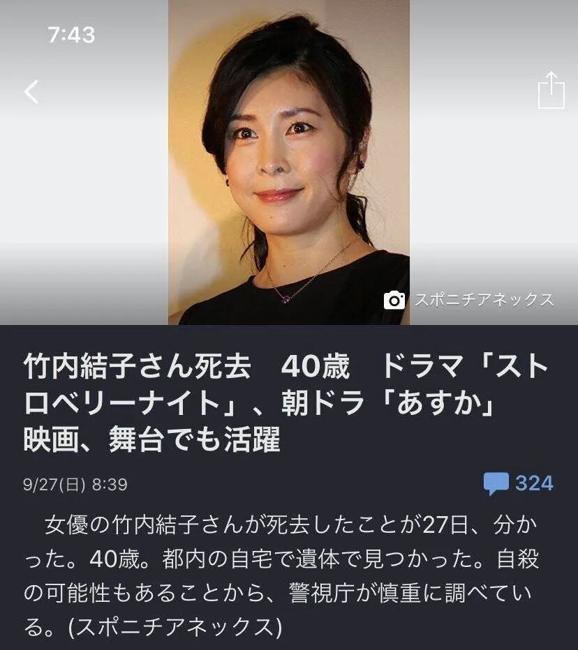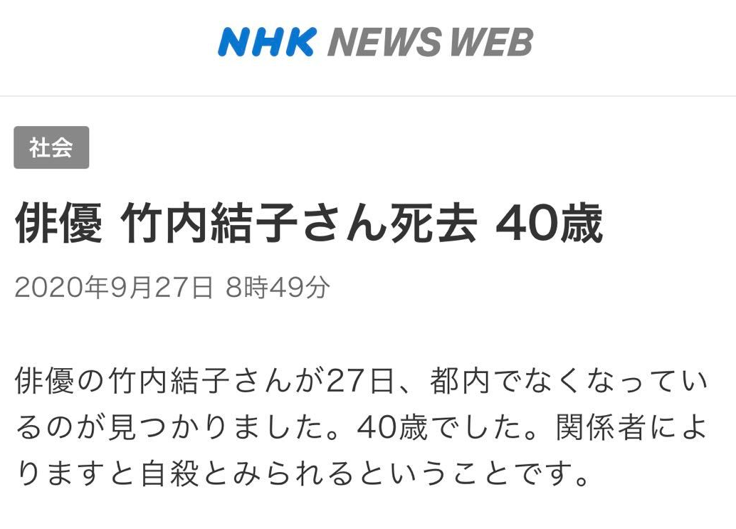 包括NHK、时事通讯社在内的多家日本主流媒体都做了报道,今天在东京都内的家中,发现了竹内结子的遗体。