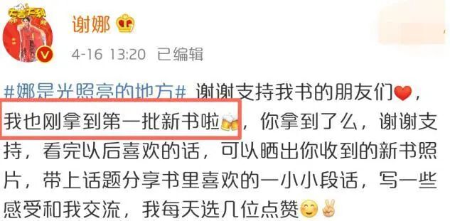 4月16日,谢娜在社交平台上发文宣传了自己新书,引发了不少网友的关注。