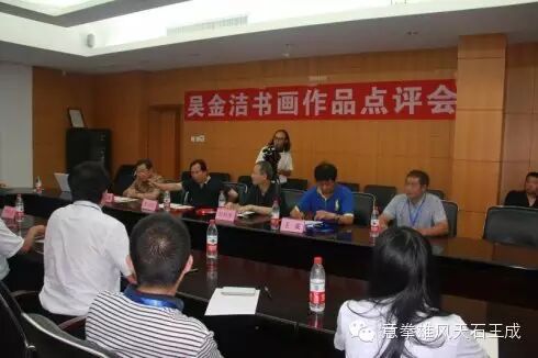 左起全国艺术学学会常务理事、教育部全国优秀博士学位论文(艺术学)评审专家,清华大学博导陈池瑜先生、北京师范大学艺术与传媒学院书法系教授、博士生导师倪文东先北京邮电大学艺术与设计学院教授赵树繁先生、北京民旅大学教授、国际武术意拳联合会副主席、著名书画评论家天石王成先生、吴金洁的父亲吴先生。