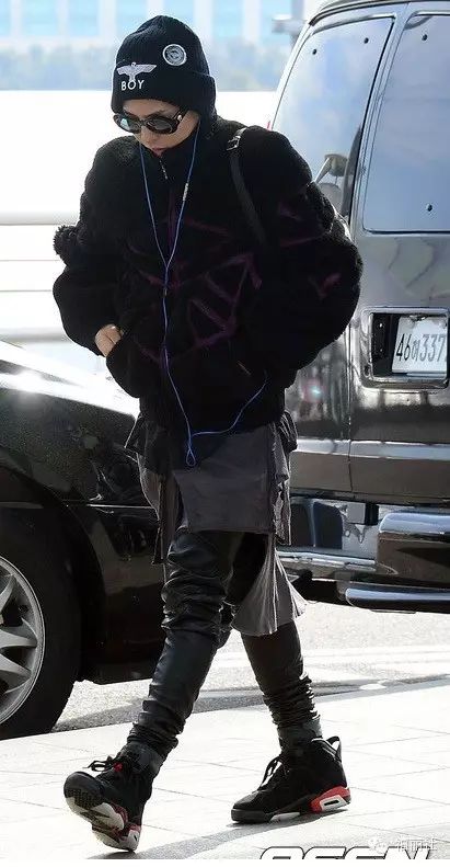 Chanel 夹克和潮牌Boy London 以及Nike Jordan混搭,GD欧巴搭配功力太神咯~