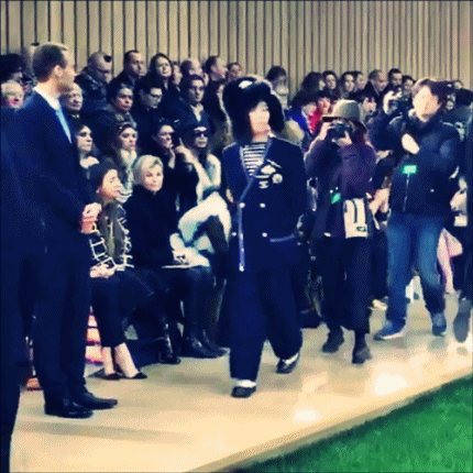 毛茸茸的雷锋帽,搭配Chanel 天鹅绒套装,轻轻松松就成为整个秀场的焦点。