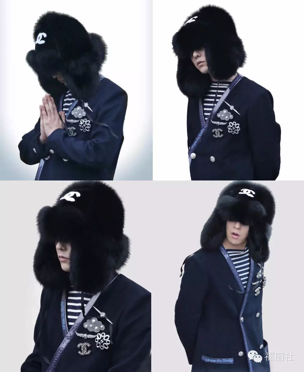 毛绒雷锋帽君又来了,不过这一次的花呢外套,是GD欧巴穿的为数不多的Chanel 男士系列。