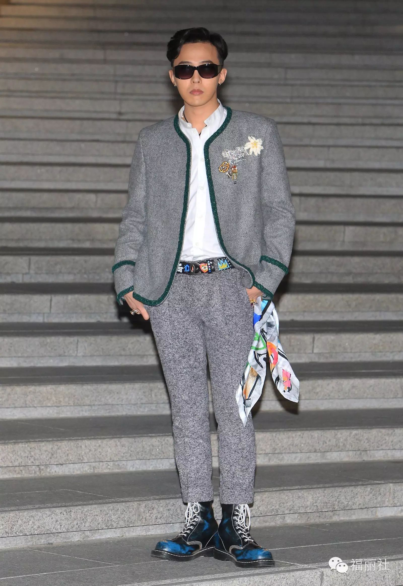 白衬衫、花呢套装、还有那一溜儿胸针,GD欧巴总能让原本柔和的女装变为难辨性别的独特风格。
