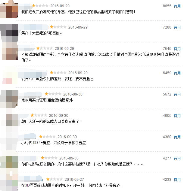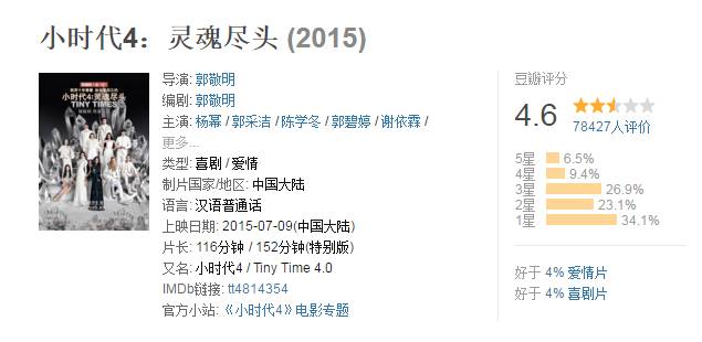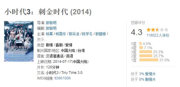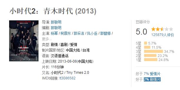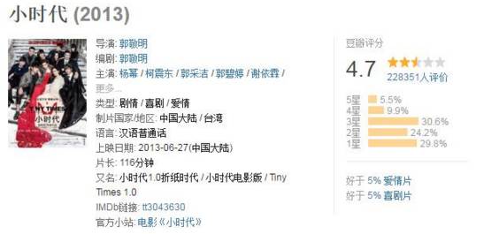 你看,《小时代》的评价一部也不及格,打分(看过)的人越来越少。从22万流失到7万,观众是多么的失望啊!