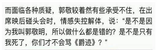 郭敬明说:“是不是因为我叫郭敬明,所以做什么都是错的?是不是只有我死了,你们才不会骂《爵迹》?”