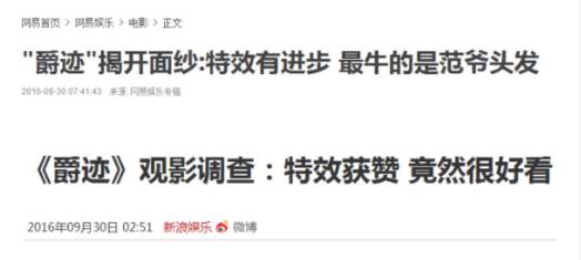 中国电影首次尝试全CG是勇敢的,连恶评《爵迹》预告片的@毒舌电影 也对这点表示肯定。