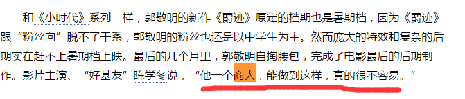 这对成名以来,在挣钱上从未失手的郭敬明来说,简直是奇耻大辱。