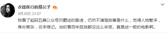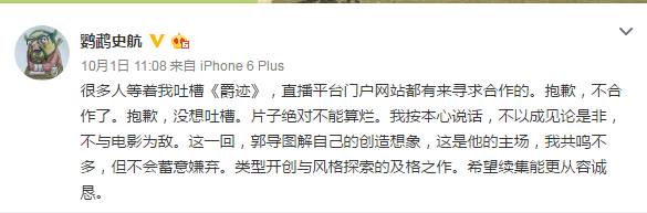 就连曾经因骂《小时代》而与郭敬明粉丝大战三百回合的@鹦鹉史航 也给出了肯定的评价。
