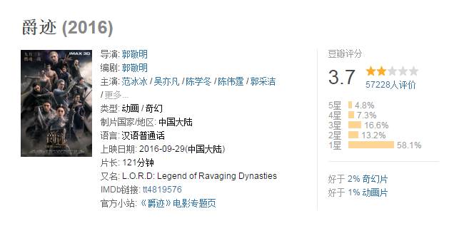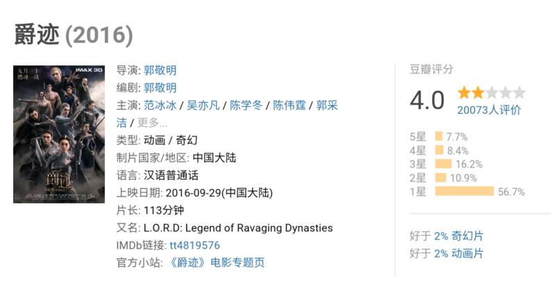 《爵迹》在上映之初只有4分(或许更低),如今已经跌落到3.7分。