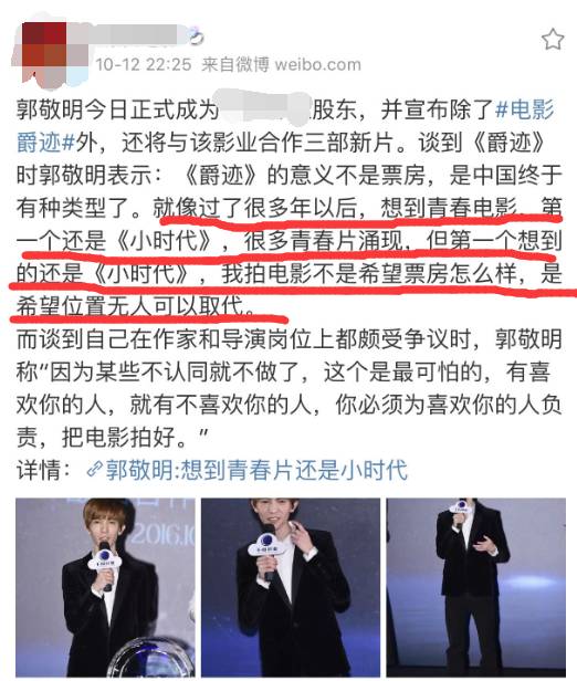 郭敬明说,他拍《爵迹》不是为了钱,不然就去拍《小时代5》去了。