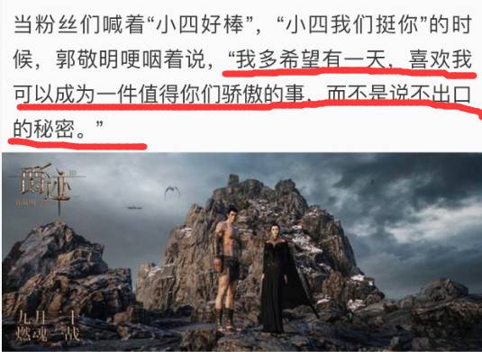 郭敬明或许能感到,已经众叛亲离,因为他说:“我多希望有一天,喜欢我可以成为一件值得你们骄傲的事,而不是说不出口的秘密。”