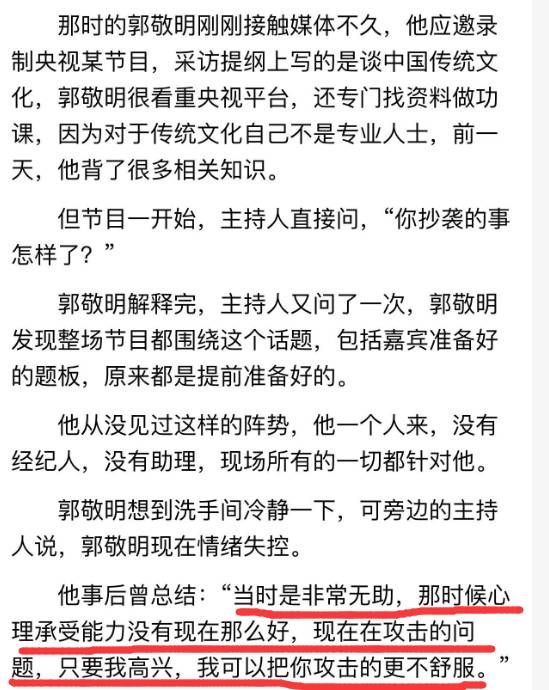 直到今天,郭敬明谈起那段访谈,仍然觉得是被主持人带沟里去了。