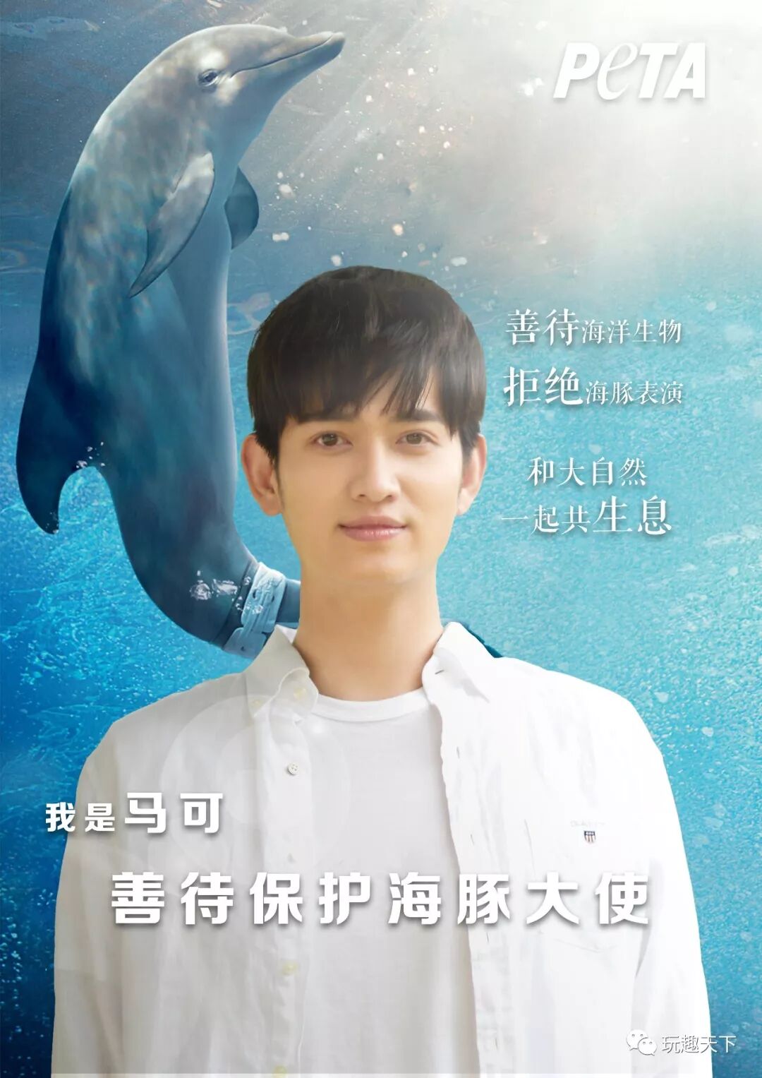 马可荣获PeTA善待保护海豚大使的称号。