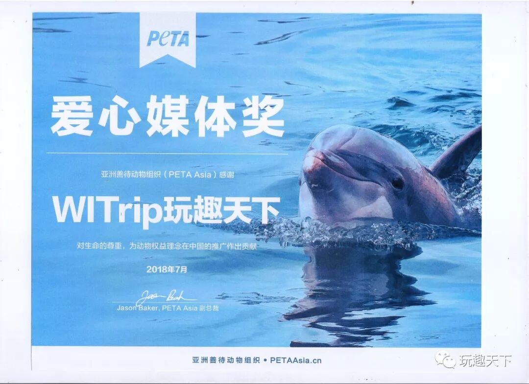 从2017年起,WITrip玩趣天下旅游杂志、视频、微博微信正式展开了与PeTA Asia的战略合作,致力于“为动物发声”、“拒绝动物表演”、“以领养代替买卖”、“拒绝皮草”、“吃素”等多个公益话题领域的宣传,2018年也荣获了PeTA颁发的“爱心媒体奖”。