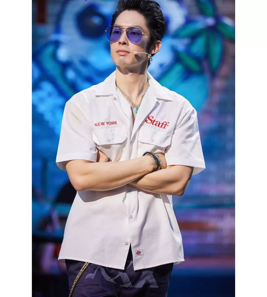 海选阶段的造型是 one of my favorite,也只有像吴建豪这样的身材,才 hold 得住单穿短袖开领的 camp shirt,各种配饰运用得恰到好处,让整体感觉清爽而不单调。