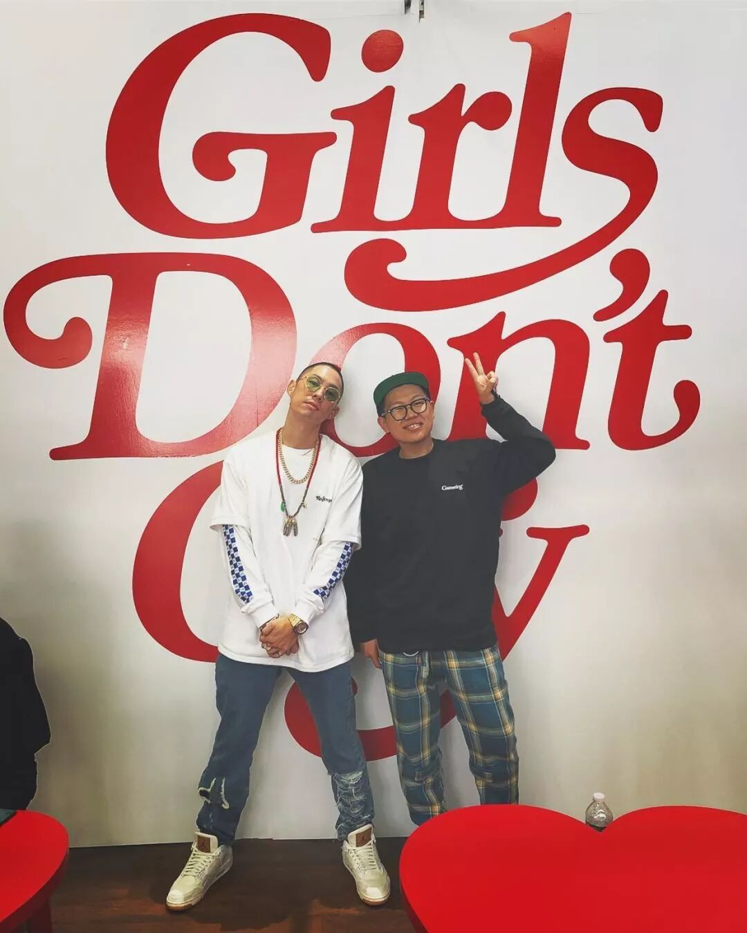 为什么吴建豪能得到这件衣服,因为热衷于混潮流圈的他跟 Girls Don't Cry 主理人 Verdy 关系不错,在 ins 上经常能看到他俩的合影。欸,Verdy 的裤子有点眼熟?