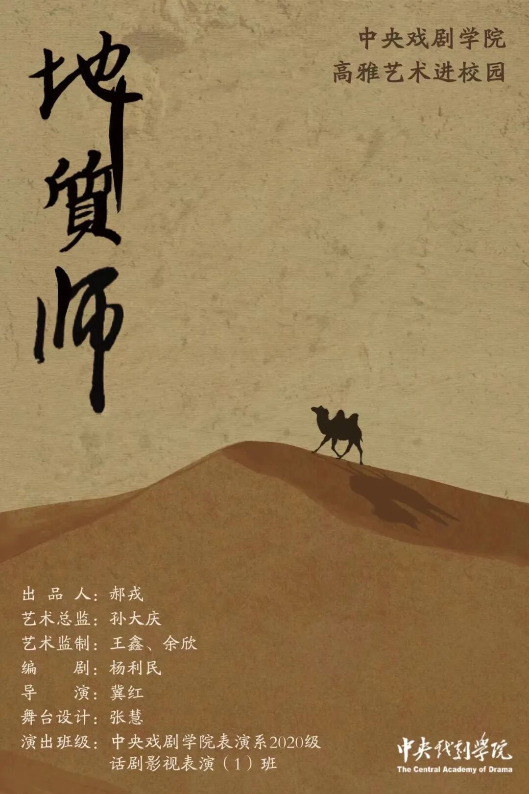 2023年“高雅艺术进校园”活动将于近日拉开帷幕,巡演将跨越陕西、湖北、江苏三个省份,总覆盖十四所高校。演出剧目为表演系话剧《地质师》。