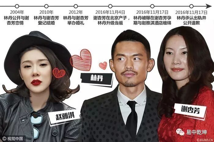 11月17日,有微博网友爆料,9月中旬,林丹与神秘女子挽手。10月,林丹赴广东比赛,深夜再与该女子酒店亲热,林丹不仅搂住女方腰部,还在屁股上狠狠掐了一把。该女子被指是赵雅淇。