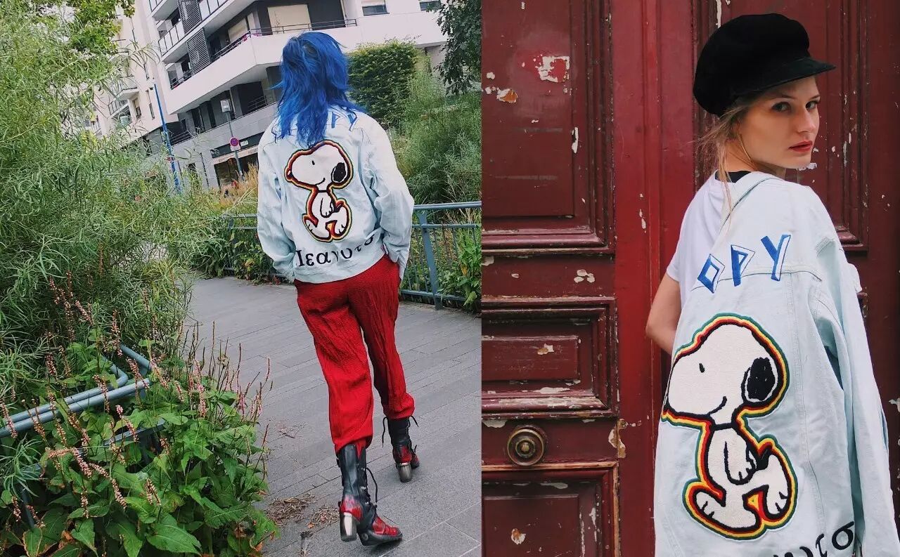 除了卫衣,这件后背印有吸睛 Snoopy 图案的水洗牛仔夹克,也是万能吸睛神器。短款夹克本来就够有型,加上亮眼的 Snoopy,走在人群中绝对的最亮的星。