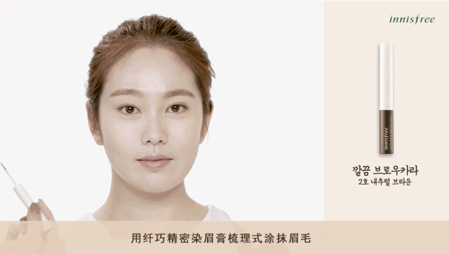 Step4. 用纤巧精密染眉膏梳理式涂抹眉毛△