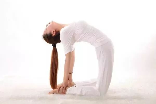 做法:跪坐在垫子上,双手撑在地面,保持手臂、大腿和地面垂直的状态。然后吸气,臀部上翘,腹部下压,仰头呼吸,将整条脊椎压成弯曲的状态,呼吸均匀地保持这个动作。然后再边慢慢呼气,脊椎慢慢反向拱起。到最高点的时候保持一段时间,自然呼吸。然后再慢慢边呼气边还原身体。