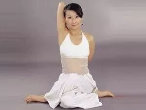 做法:首先保持跪立的状态,左腿向前抬起,将左小腿放在右小腿的外侧,臀部坐在两小腿中间的地面上。吸气,然后左手向上,右手向下,双手背后紧紧相扣。将后背部挺直,保持4次均匀的呼吸。然后边吸气边慢慢还原。另一边也重复同样的动作。