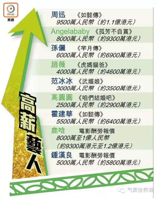 网易娱乐8月28日报道 据香港媒体报导,近年不少艺人在内得发展赚得盆满钵满,原来背后涉及天价片酬问题。广电总局早前公布要抵制艺人天价片酬,央视也爆出内地女星周迅与台湾男星霍建华以合共1.5亿人民币(约1.7亿港元)接拍内地剧《如懿传》,周迅还收9,500万人民币(约1.1亿港元)天价剧酬,力压一众女星。