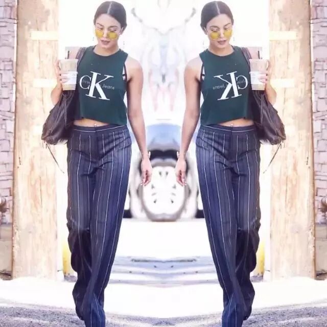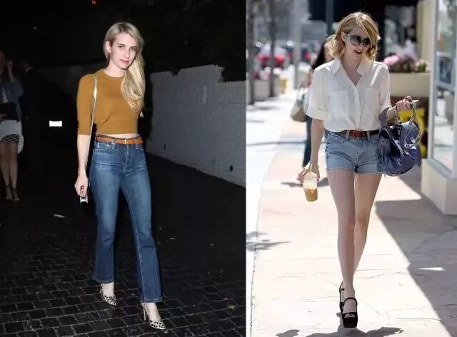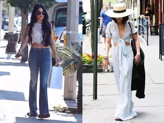 其实提腰线另一个简单粗暴的方法是穿高腰款式的裤子,再搭配短上衣就无敌了。同样未达一米六的Vanessa Hudgens 就深谙这个道理▼