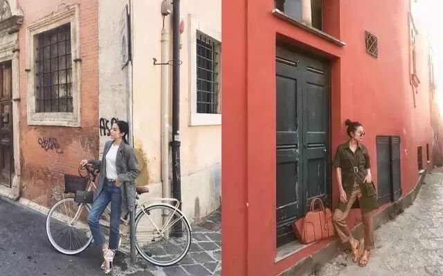 除了在穿搭上做功课,拍照的时候怎么才能让照片看起来一米八呢?就是一个字:靠!靠着之后曲线要比直线看起来更长,整个人就显得更高▼