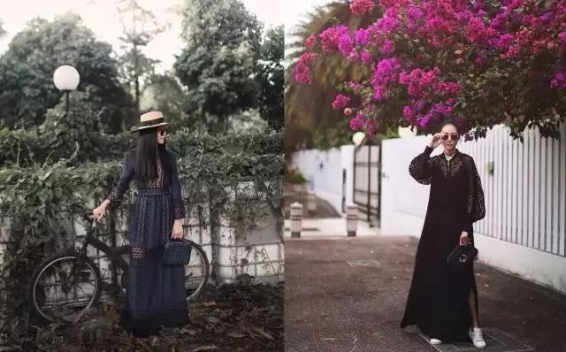 在选择长裙的时候还可以有心机的选有开叉的款式,若隐若现的长腿还能制造一点小性感▼