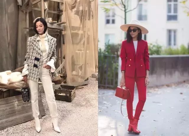 下半身同色系就是下装的颜色和鞋子的颜色是同个色系,这样的话视觉上不会有分段的感觉,营造视觉延伸感▼