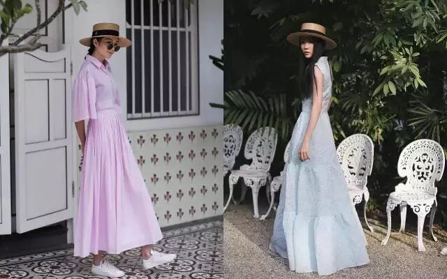 如果腿不够细、小腿不够好看的建议穿长裙~长裙更可以把我们不是很好的比例隐藏起来,产生不错的视觉效果▼