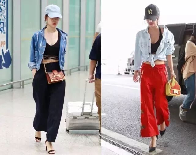 每每穿高腰阔腿裤就会搭配露脐短上衣,就是要把小短腿遮起来把小细腰露出来▼