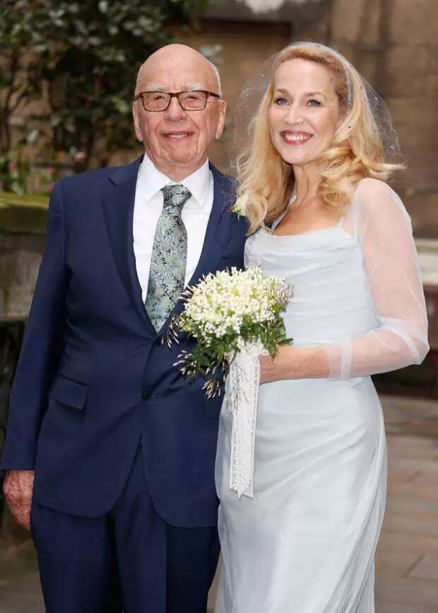 然后在米克偷腥出轨的2016年,59岁的杰莉-霍尔再婚了,对象是84岁默多克!