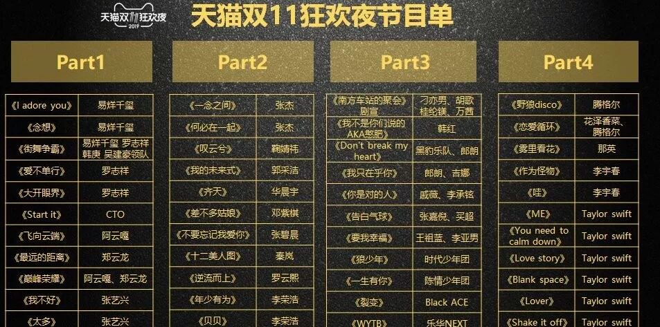 按照惯例,每年的“猫晚”(天猫双11狂欢夜)都是一场视觉盛宴。而今年的节目单目前已经公布,除了泰勒·斯威夫特、Ayasa、张艺兴、易烊千玺带来的一系列带来节目外……