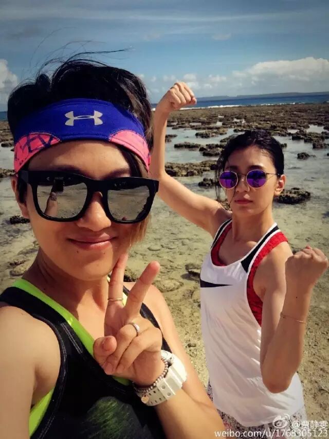 看贾静雯昨晚在微博上晒出的跟友人到海边运动的照片,状态真的很好!