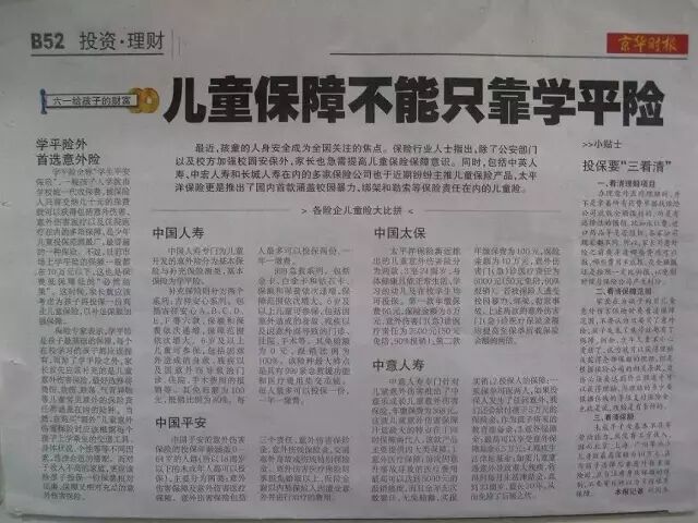 不少有条件的父母都购置了少儿教育险为孩子攒下高中、大学乃至留学的费用。这类保险通过类似强制储蓄手段积累资金,缓解往后孩子教育等方面经济压力。但是这类保险比上述三项只是起锦上添花的作用,家长要根据自身经济能力选择,量力而行。