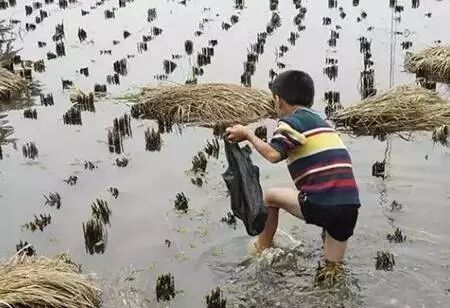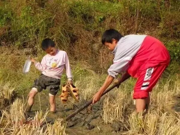 田坝里一直是农村娃儿的开心天地!挽起裤腿和袖子,一下午就能挖到小半盆的泥鳅。