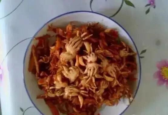 虽然河蟹很小,但清除干净,拿来油炸或红烧,连皮都变得焦脆。很香很香。