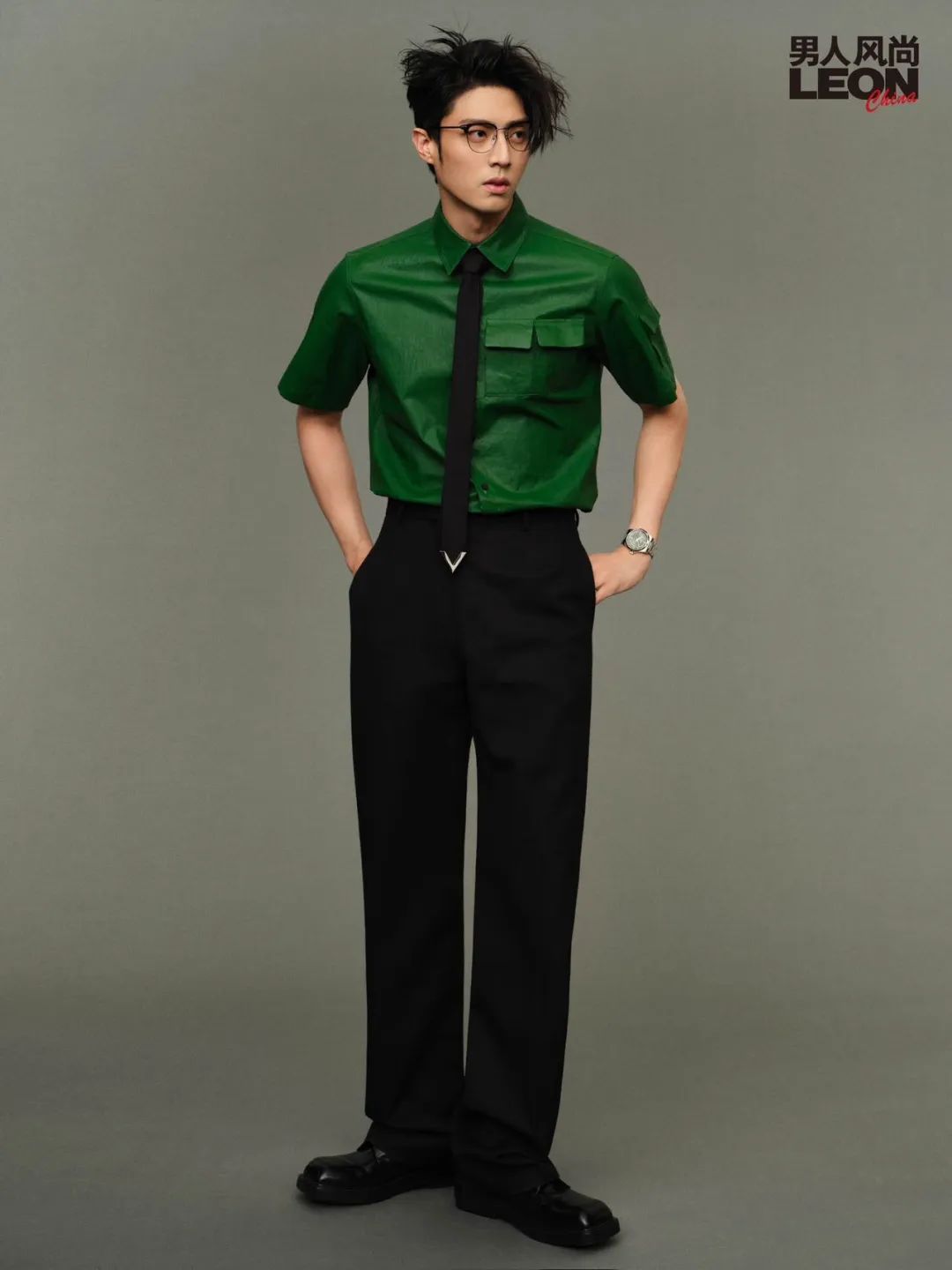 绿色衬衫、黑色长裤 / 均为 FERRAGAMO