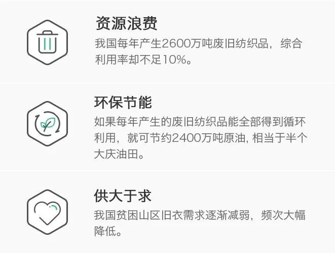 当环保成为一种生活方式,拒绝旧衣资源浪费,减少环境污染,让旧衣循环利用起来,我们开始和地球握手言和!