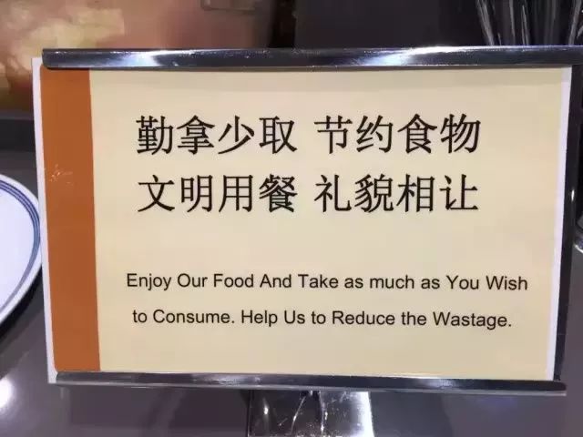 很多餐厅虽然墙上写着“剩余食物不能超过150克,否则要额外缴纳餐费”,但客人还是不管不顾,拿一大堆,剩一大堆,大量浪费。