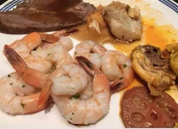 船上的28个餐厅,因为是免费自助,一盘一盘的鸡腿牛排,三文鱼大虾,只吃了几口就扔一边。