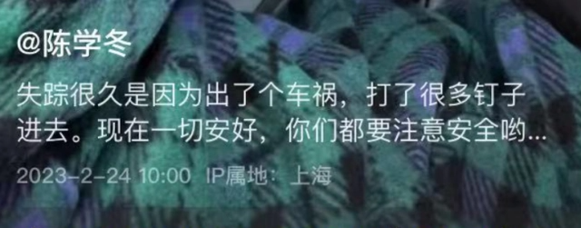 陈学冬自曝遭遇严重车祸! 天津摇号 内地男星 2023-02-25 09:20:08 293 创作不易,用心坚持,欢迎请BaGua喝几杯爱心咖啡!打赏并支持本文 打赏并删除本文 24日,陈学冬在社交平台发布视频称自己遭遇车祸腿受了伤,但脸部没有受伤。他表示目前正在接受治疗积极康复中。 视频中,陈学冬腿上绑着有助于康复固定的医疗器械,好像盔甲一般。他公开了脚部受伤照,不仅脚面大面积淤青发肿,在脚踝处还一连缝了好多针,再加上陈学冬自己透露的打钢钉,其受伤情况可谓十分严重。由于脚部受伤,处于恢复期的陈学冬目前只能靠坐轮椅出行,虽说行动不便,但陈学冬的心态还是很不错的。头扎小辫的他对着镜头开心比耶,十分乐观积极。“哈利波特骑着扫帚飞,sorry sorry,而我的扫帚,却只能清理垃圾堆~”经常刷短视频的网友想必都听过这段堪称魔性的歌曲吧,它其实就是陈学冬在参加综艺节目《跨界歌王》时,特意将原曲音调改编成rap后演唱的。由于改编后音调太过铿锵有力,让不少网友将其与其他魔性歌曲剪辑拼凑在一起,在网上疯狂流传。这次受伤的陈学冬也因这首歌被网友调侃。评论区有网友说他不能骑着扫帚飞了,陈学冬回复:朋友,不影响飞的。陈学冬,1990年6月28日出生于浙江省温州市,中国内地影视男演员、歌手,毕业于上海音乐学院。2012年,出演个人首部电影作品《小时代》,并因片中作家周崇光一角获得关注。2013年,其主演的都市青春片《小时代2:青木时代》、《小时代3:刺金时代》等电影票房均过亿。来源:极目新闻、杭州交通918、网络等 创作不易,用心坚持,欢迎请BaGua喝几杯爱心咖啡!打赏并支持本文 打赏并删除本文 感谢您的支持鼓励,我会继续努力的!文章地址:用户邮箱:打赏金额:USDT 请输入数字点击”去打赏“,即可进行打赏支持本文章哦 陈学冬 发表评论