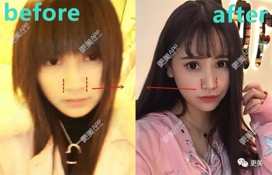 其实她的底子还算不错,就是鼻头有点大,后期貌似缩小了鼻翼,又垫高了鼻子才有了网红款翘鼻子
