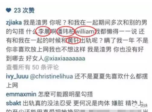 曾经网红夏夏和某男撕逼的时候还被爆出和半个娱乐圈的男星都有过联系