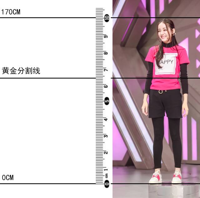 通过刻度尺我们可以看见,热巴的上半身和下半身的身材比例为:3.6:6.4